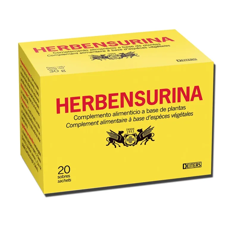 Deiters Herbensurina es un complemento alimenticio que combina extractos de plantas tradicionalmente empleadas para apoyar las funciones fisiológicas normales del tracto urinario. Cada sobre contiene una mezcla equilibrada de ingredientes de origen vegetal, diseñada para complementar la dieta y contribuir al mantenimiento del bienestar general de las vías urinarias, sin sustituir un estilo de vida saludable.