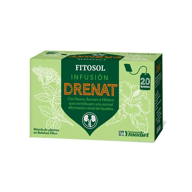 La Infusión Dr. Drenat de Ynsadiet es un complemento alimenticio en formato de infusión diseñado para aportar de manera sencilla las propiedades de diversas plantas reconocidas por su función diurética y depurativa. Cada envase contiene 20 sobres monodosis que facilitan la preparación de una bebida caliente con un aroma agradable y sabor equilibrado. Su formato en sobre individual permite su consumo tanto en casa como fuera, sin necesidad de medir cantidades ni transportar envases grandes, ideal para acompañar una dieta equilibrada y un estilo de vida activo.