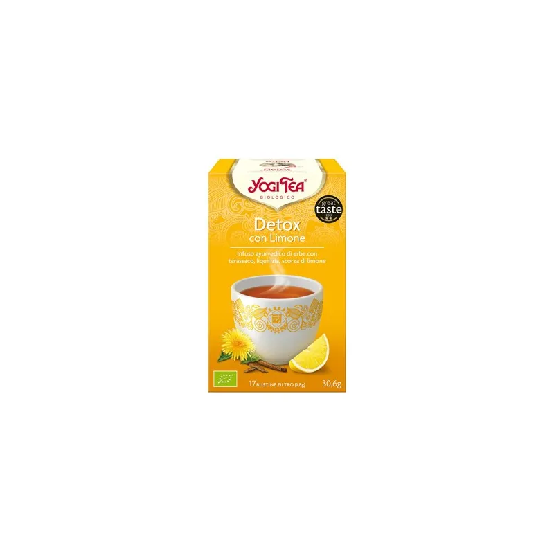 Yogi Tea Detox Limón 17 sobres es una infusión ecológica con mezcla de hierbas y especias de inspiración ayurvédica que ofrece un sabor refrescante con un suave toque cítrico.