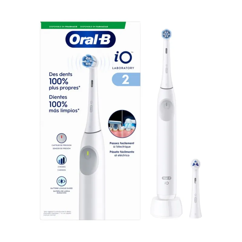 Oral-B IO 2 Cepillo Eléctrico Color Blanco es un innovador dispositivo diseñado para mejorar la higiene bucal diaria de forma eficaz y cómoda. Este cepillo eléctrico de última generación combina tecnología avanzada con un diseño elegante y funcional, ofreciendo una experiencia de cepillado única.