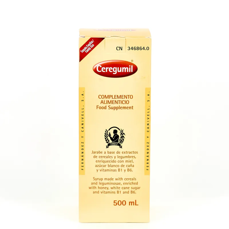 Ceregumil 500ml es un complemento alimenticio en formato jarabe de sabor dulce elaborado a partir de ingredientes naturales seleccionados por su perfil nutricional. Su formulación combina extractos purificados de cereales y legumbres, miel y azúcar de caña en proporciones diseñadas para aportar nutrientes asimilables con rapidez y eficiencia. Esta mezcla puede contribuir al mantenimiento de niveles adecuados de energía durante el día, especialmente en periodos de convalecencia, postoperatorios, estados de fatiga moderada o situaciones en las que la ingesta diaria de calorías y nutrientes sea reducida. Su presentación líquida facilita su consumo en variadas situaciones y su dosificación es sencilla para adaptarse a rutinas diarias.