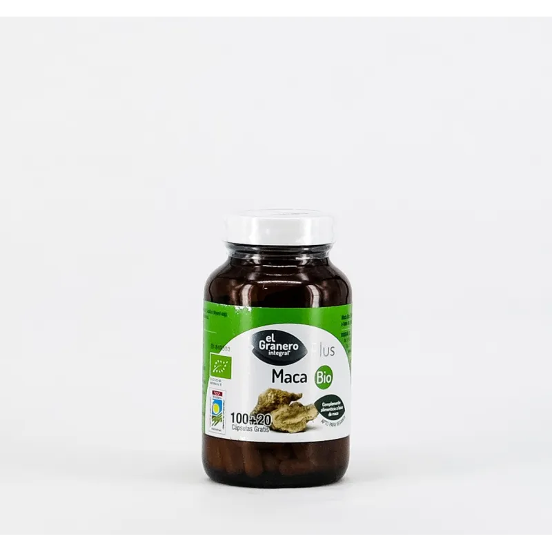 El Granero Maca Bio es un complemento alimenticio elaborado a partir de polvo de raíz de maca de cultivo ecológico. Sus ingredientes aportan principios activos naturales como macamidas, macamoles y una variedad de vitaminas y minerales, que contribuyen al mantenimiento de los niveles de energía y al bienestar físico y mental en situaciones de fatiga ocasional.