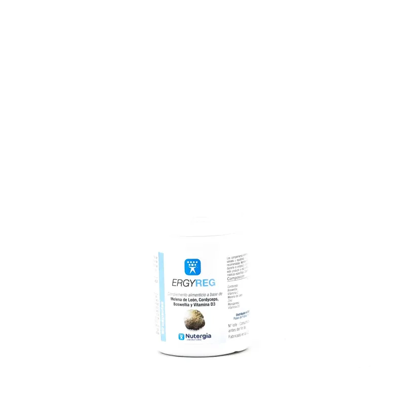 Ergyreg, 60 cápsulas es un complemento alimenticio que integra activos procedentes de la micoterapia, la fitoterapia y la nutrición celular. Su fórmula combina extractos de Melena de León (Hericium erinaceus), Cordyceps militaris y Boswellia serrata, junto con vitaminas C y D, zinc y manganeso, seleccionados para complementar la ingesta de estos componentes en una dieta equilibrada.
