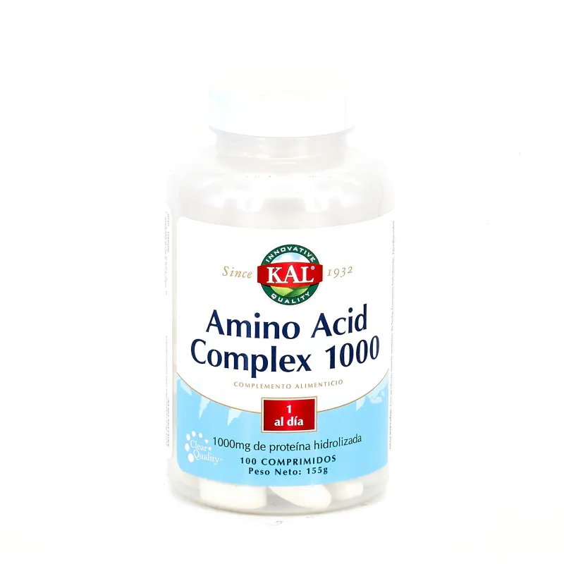 KAL Amino Acid Complex es un complemento alimenticio en comprimidos que proporciona una mezcla de aminoácidos predigeridos obtenidos a partir de caseína hidrolizada. Está formulado para adultos que desean reforzar su aporte de aminoácidos esenciales y semiesenciales, contribuyendo al mantenimiento de la masa muscular y a la síntesis proteica.