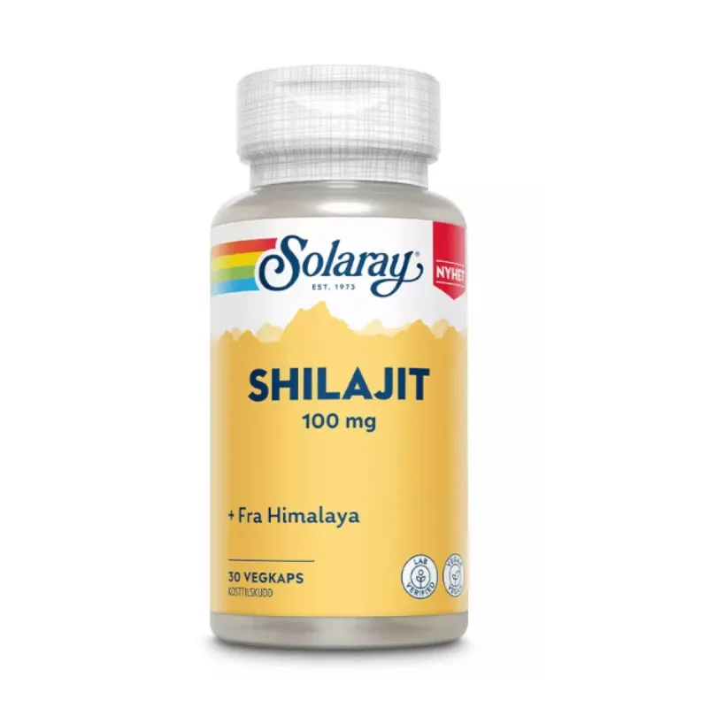 Solaray Shilajit 100 mg es un complemento alimenticio en cápsulas vegetales que contiene shilajit, una sustancia natural resinosa proveniente de montañas del Himalaya y otras regiones. Cada cápsula aporta 100 mg de shilajit filtrado y purificado, rico en ácidos húmicos, fúlvicos y minerales traza. Este complemento está formulado para suministrar estos compuestos bioactivos que, de manera tradicional, se asocian a la promoción de bienestar general y niveles normales de energía.