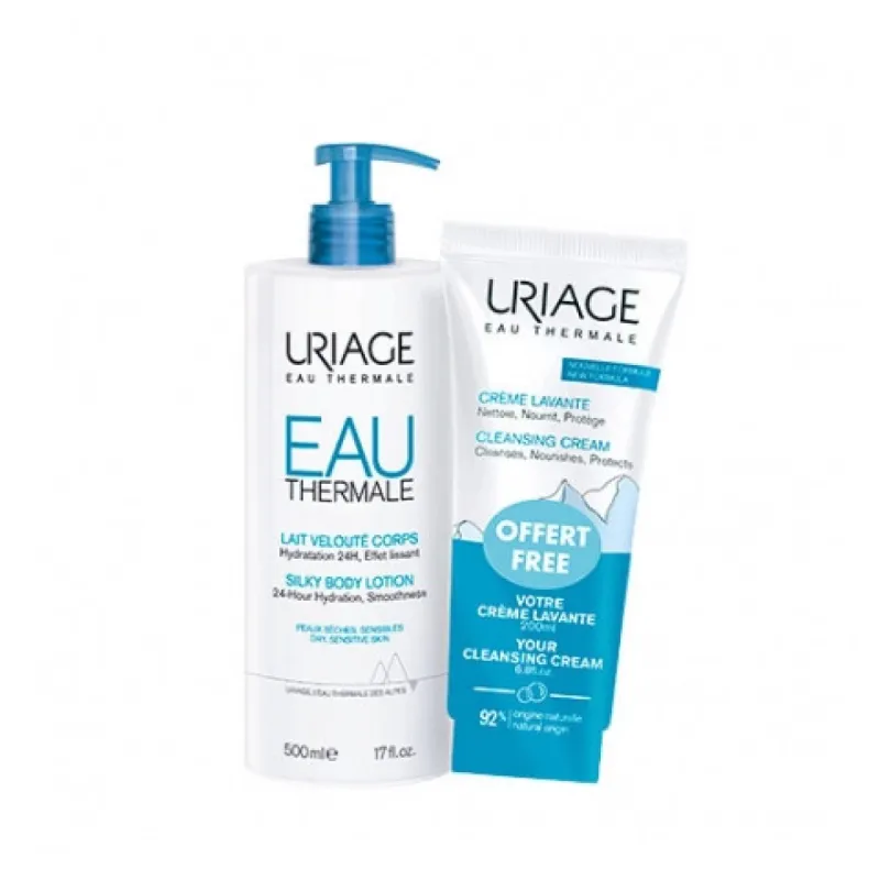 Uriage pack leche corporal 500 ml + regalo crema lavante combina exclusivos ingredientes que te ayudarán a hidratar tu piel a profundidad, por lo que estará más suave y radiante.