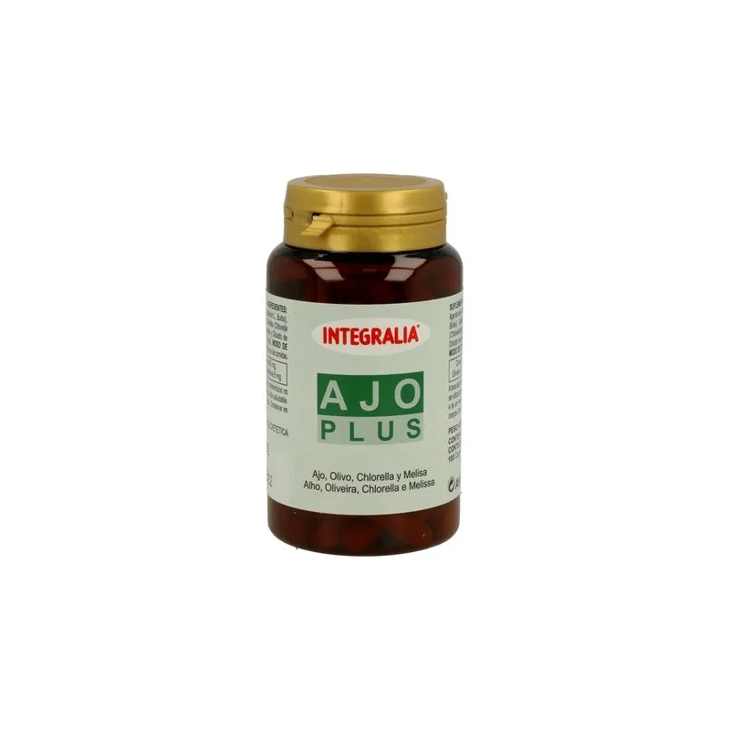 Integralia Ajo Plus es un complemento alimenticio que combina extractos de Ajo (Allium sativum), Olivo (Olea europaea), Chlorella vulgaris y Melisa (Melissa officinalis). Está formulado para aportar un conjunto de nutrientes que contribuyen al mantenimiento de funciones circulatorias y al metabolismo lipídico dentro de una dieta equilibrada.