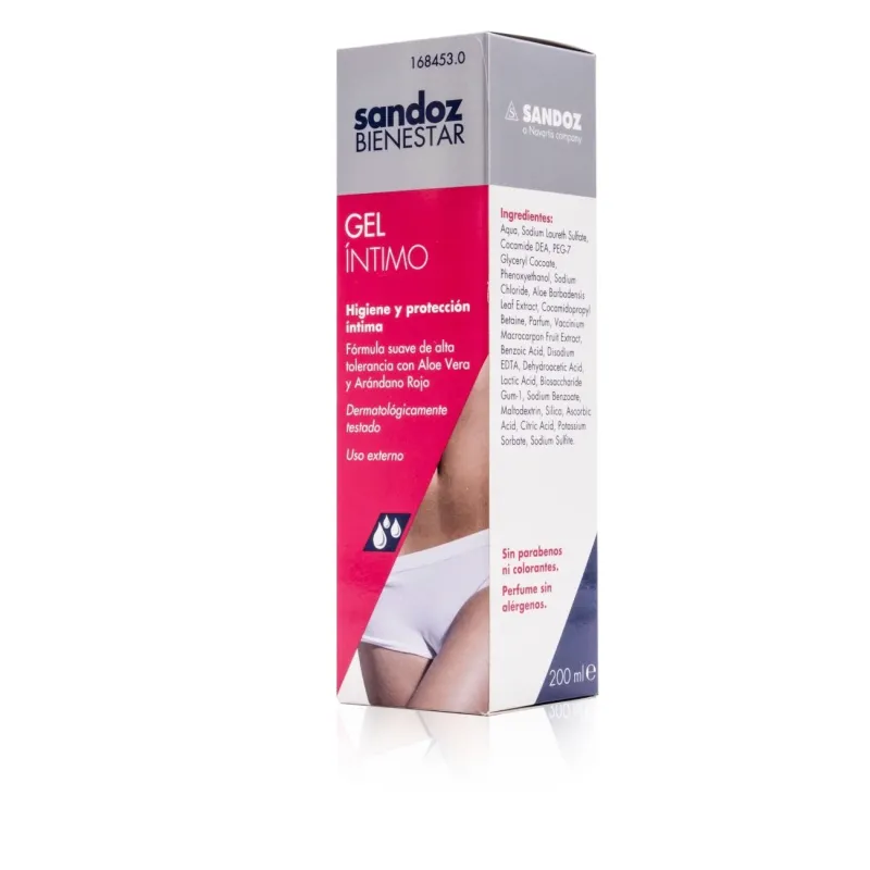 Sandoz Bienestar Gel íntimo posee una fórmula refrescante con agentes activos de origen 100% natural como el aloe vera y arándano rojo que ofrece una sensación de confort y bienestar que permanece durante todo el día. Su composición tiene la capacidad de aliviar y proteger la zona vulvar y perineal. Testado dermatológica y ginecológicamente.