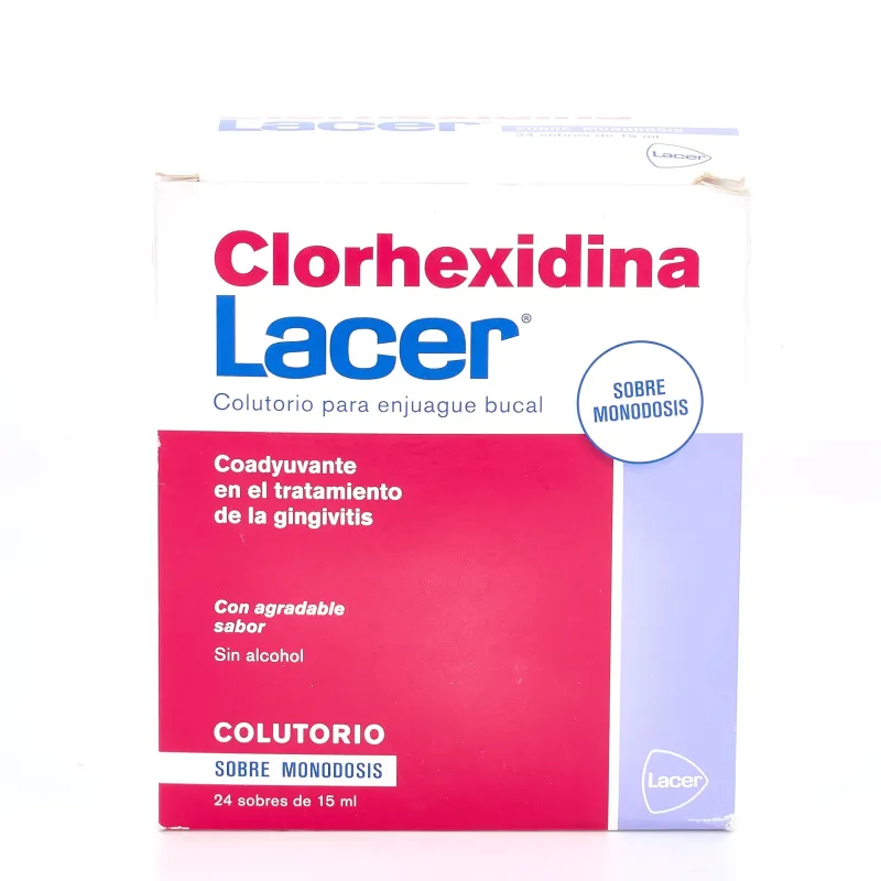 Lacer Clorhexidina Colutorio contiene 24 sobres en presentación unitaria (monodosis) de 15 ml cada uno para una mayor comodidad. Posee un agradable sabor y no contiene alcohol.