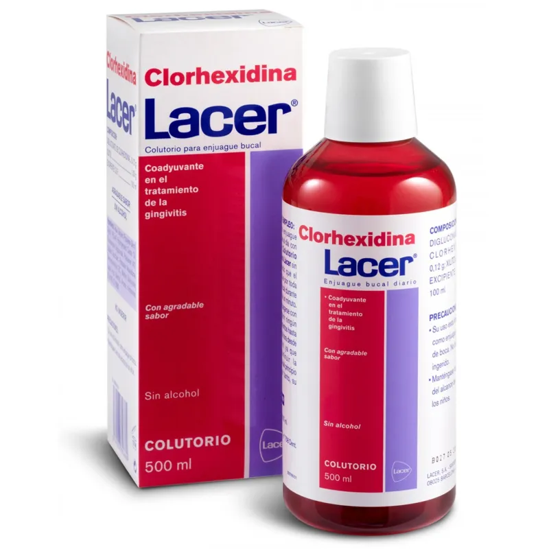 Lacer Colutorio Clorhexidina, es un enjuague bucal de uso diario, especialmente indicado como coadyuvante en el tratamiento de gingivitis y periodontitis entre otros.