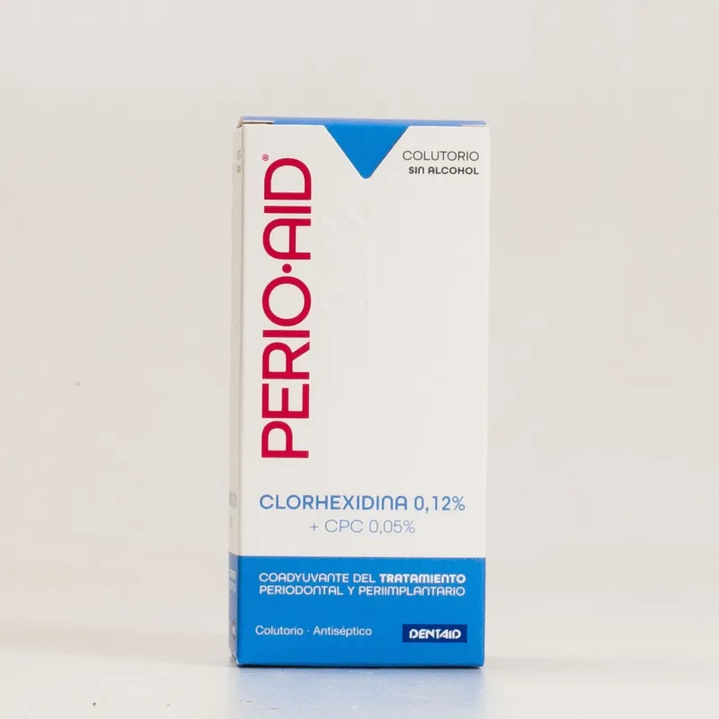 Perio Aid es un colutorio sin alcohol diseñado para el tratamiento de enfermedades periodontales.