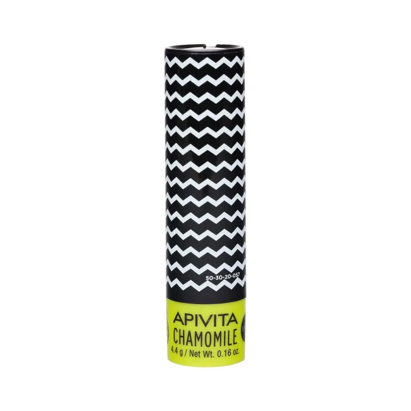 El bálsamo labial Apivita Lip care con Camomila proporciona calma y alivio, hidrata los labios resecos y los protege de las radiaciones solares gracias a su protector SPF 15.