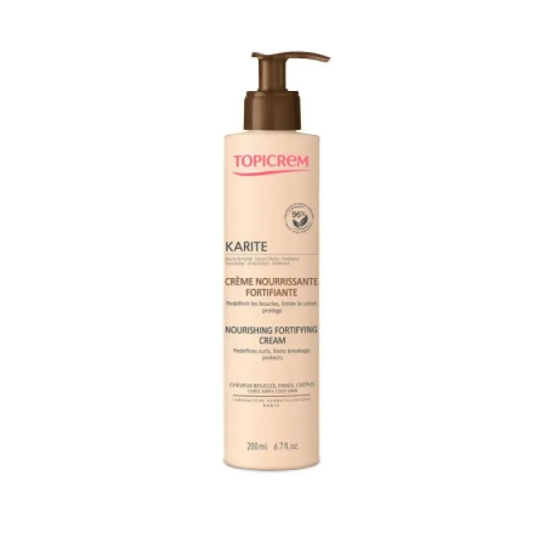 Topicrem Karité Crema Nutritiva Fortificante es una crema corporal diseñada para proporcionar una nutrición intensa y mejorar la resistencia de la piel. Presentada en un envase de 200 ml, esta crema es ideal para pieles secas o muy secas que requieren cuidado y protección adicionales.