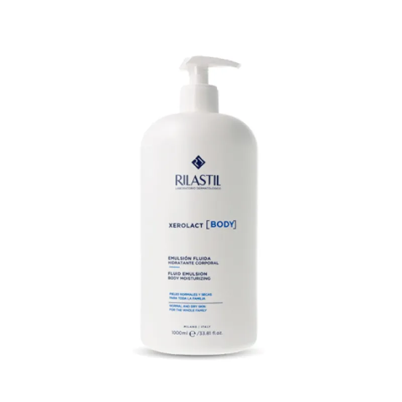 Rilastil Xerolact body es una leche hidratante corporal compuesta en un 6% con lactato sódico, de propiedades humectantes que consiguen hidratación disminuyendo la sensación de tirantez y el prúrito proporcionando una agradable sensación de alivio inmediatamente tras su su uso.