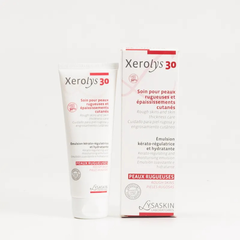 Xerolys 30 es una emulsión queratolítica e hidratante especialmente indicada para el cuidado de las pieles rugosas y con engrosamientos cutáneos.