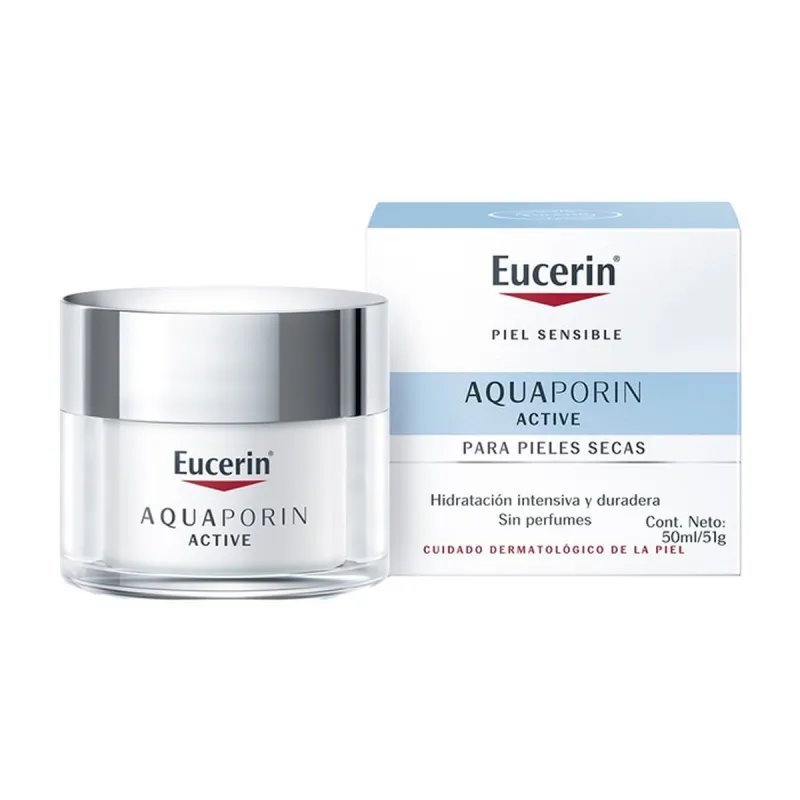Eucerin Aquaporin Active Crema Hidratante Piel Seca se presenta en un envase de 50 ml, ideal para llevar contigo a todas partes y mantener tu piel hidratada en todo momento.