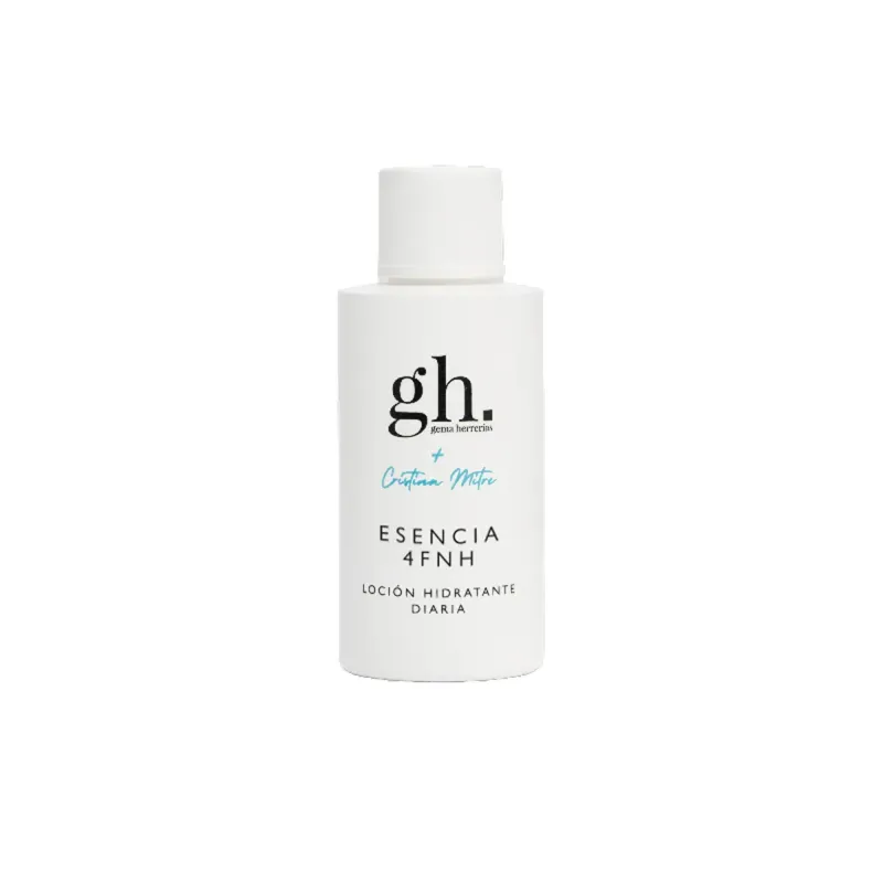 gh + Cristina Mitre Esencia 4FNH es una loción hidratante diaria desarrollada en colaboración con Cristina Mitre que combina un 0,4 % de un complejo formado por cuatro tipos de ácido hialurónico con un 2,5 % de sal mineral del FNH (Factor Natural de Hidratación). Está diseñada para todo tipo de pieles incluyendo las más sensibles, con el fin de restaurar la reserva de agua profunda, reforzar la función barrera y prevenir la pérdida cutánea de agua.