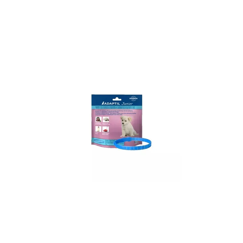 Adaptil Collar Junior es un accesorio especial ideado para cachorros. Proporciona un apoyo constante durante los primeros 6 meses de vida del cachorro, ayudándolo en diversas situaciones de adaptación como estar solo en casa, enfrentarse a ruidos fuertes y lidiar con sus llantos nocturnos.