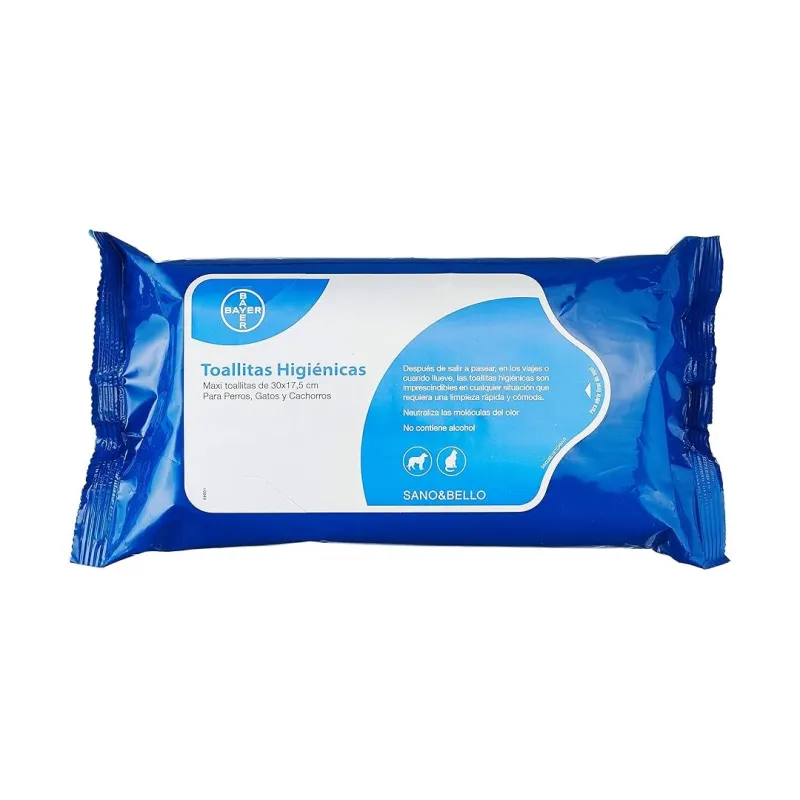 Toallitas higiénicas indicadas para perros y gatos. Promueven una rápida limpieza de tu mascota de forma suave y eficaz.
