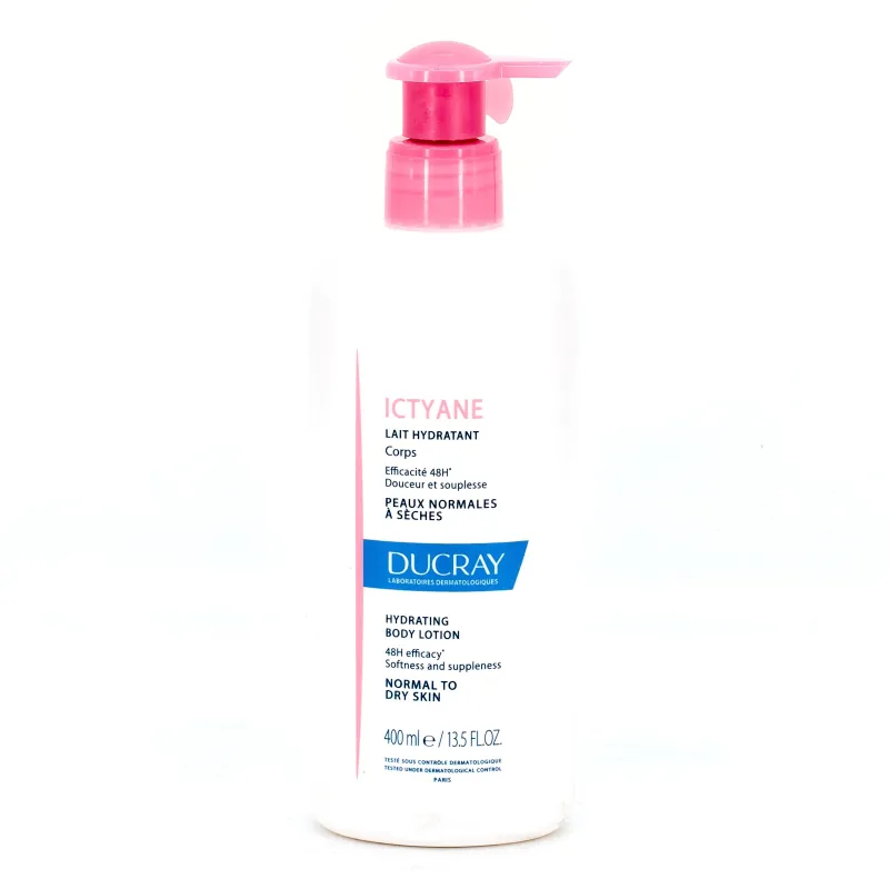La leche corporal Ictyane de Ducray hidrata en profundidad y de forma duradera las pieles secas o dañadas.