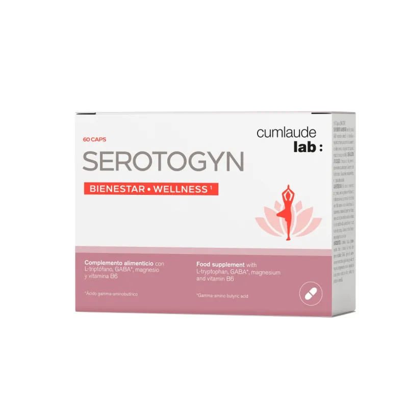 Cumlaude Lab Serotogyn es un complemento alimenticio desarrollado para acompañar a la mujer durante la menopausia. Su exclusiva combinación de L-triptófano, GABA, magnesio y vitamina B6 está pensada para contribuir a la síntesis normal de neurotransmisores como la serotonina, así como al metabolismo energético y al bienestar emocional en esta etapa. El producto está formulado sin hormonas ni fitoestrógenos, garantizando así una aportación nutritiva basada en ingredientes de origen bien caracterizado.