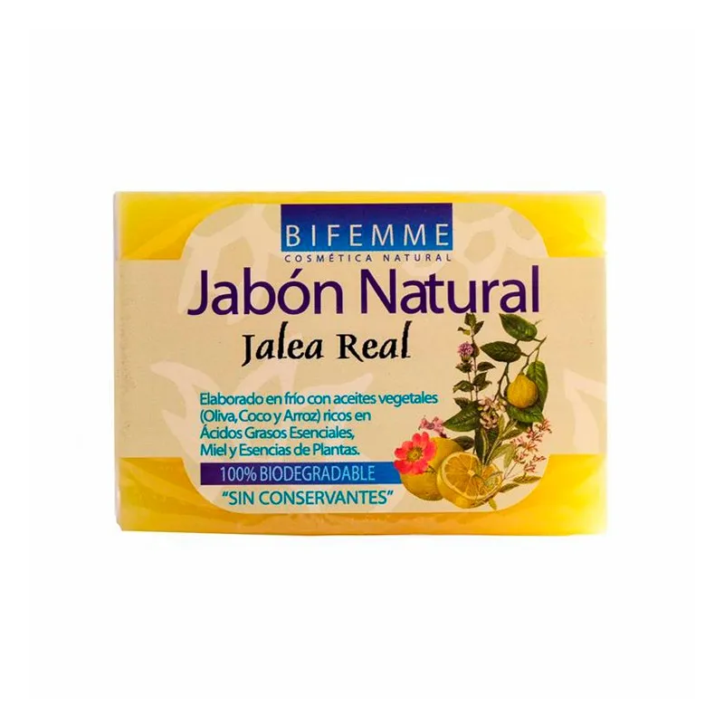 Jabón Jalea Real 100g de Bio-Femme: con jalea real para limpiar e hidratar, aportando nutrición y vitalidad a la piel.