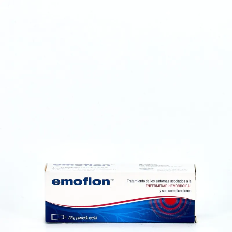 Emoflon Pomada Rectal se presenta en un tubo de 25 g, diseñado para ser fácil de usar y transportar.