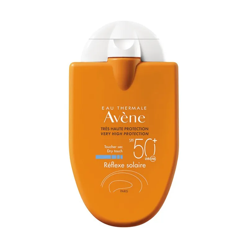 Avene Reflexe Solaire Toque seco SPF50+, es un fotoprotector solar facial, ideal para llevar a cualquier parte, gracias a su pequeño y práctico formato.
