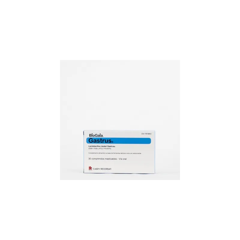 Gastrus Comprimidos Masticables es un complemento alimenticio que aporta fermentos lácticos vivos de las cepas Lactobacillus reuteri. Está formulado para integrarse en la dieta diaria y contribuir al mantenimiento de la función fisiológica del sistema digestivo, apoyando el equilibrio microbiano intestinal.