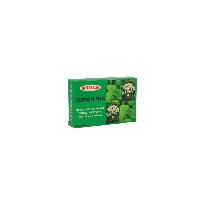 Integralia Carbón Plus es un suplemento alimenticio que combina carbón vegetal y extractos de hinojo, comino, anís verde, mejorana y melisa, ingredientes que contribuyen al bienestar digestivo.