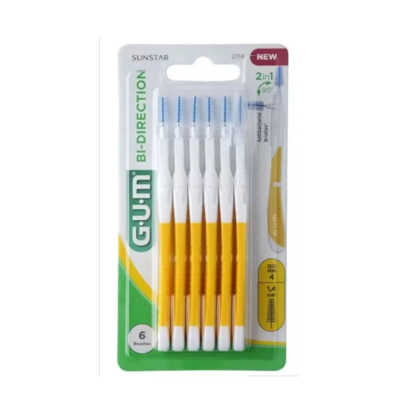 Cepillo interdental bidireccional 1,4 mm, pack de 6 con mango antideslizante. Ideal para espacios amplios, ortodoncia o implantes.