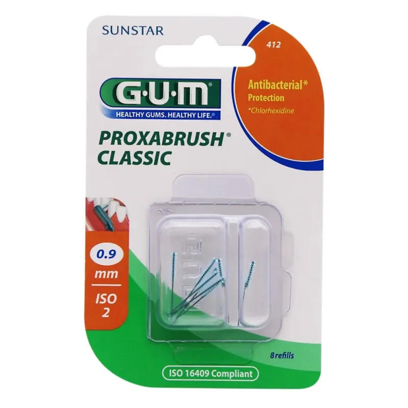 Pack de 8 recambios ultrafinos (Ø ≤1 mm) para GUM Proxabrush Classic. Ideal para espacios muy estrechos.