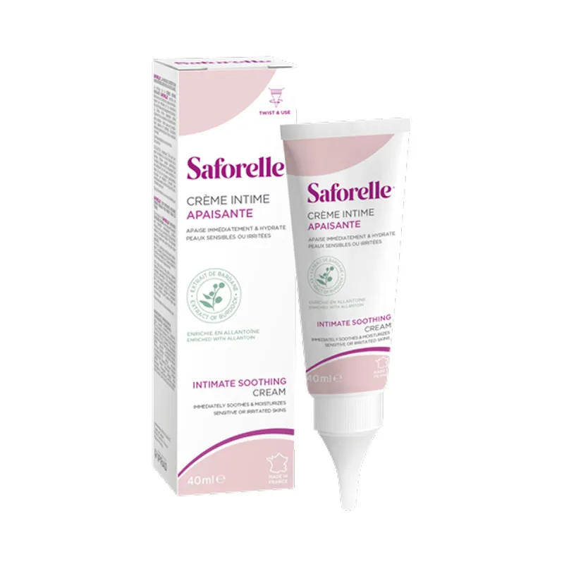 Además, Saforelle crema íntima calmante es apta para todo tipo de pieles, especialmente las secas o sensibles, y respeta el pH y la flora natural del área íntima. Está elaborada principalmente con extracto de bardana, alantoína y aceite de lavanda, y es libre de colorantes y parabenos.