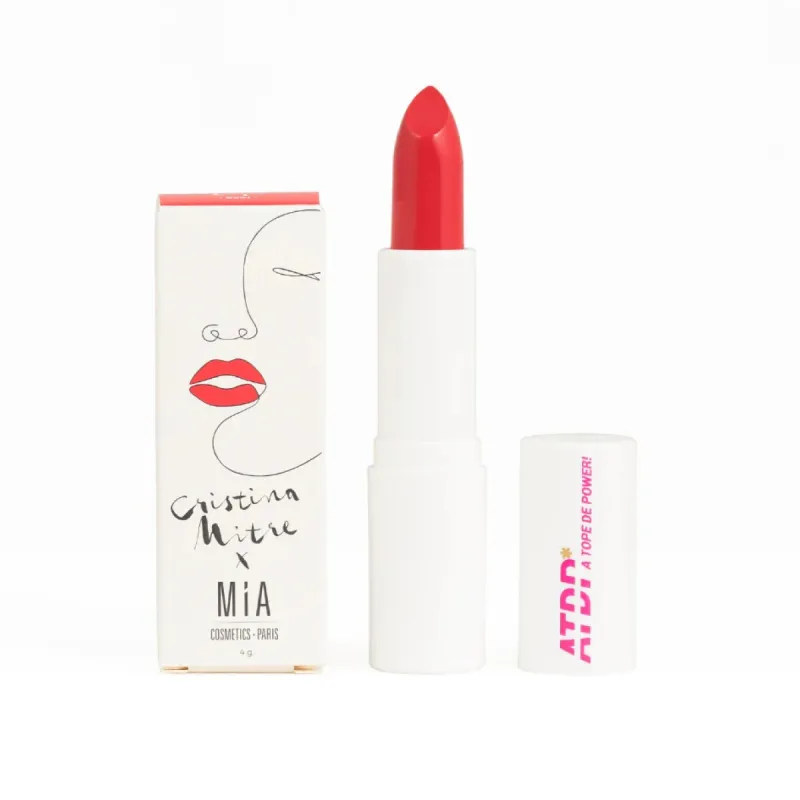 MIA, A Tope de Power Cristina Mitre barra labial contiene una combinación de activos naturales que ayudan a nutrir, proteger e hidratar la piel de los labios.