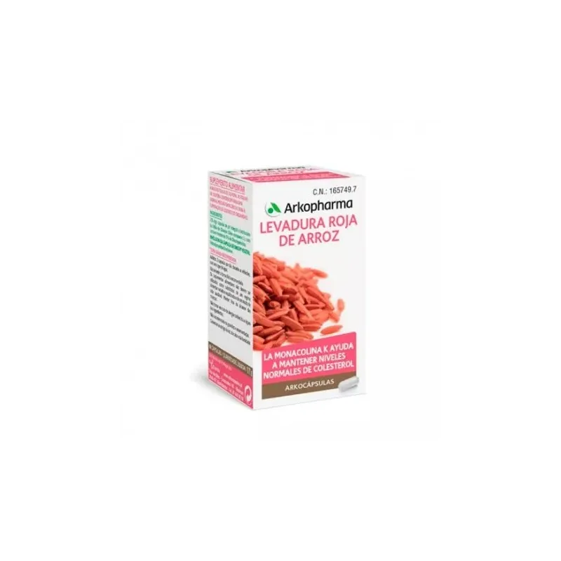 Arkocápsulas Levadura Roja de Arroz es un complemento alimenticio elaborado a partir de extracto seco de levadura roja de arroz (Monascus purpureus) fermentado sobre grano de arroz. Cada cápsula contiene 500 mg de extracto estandarizado para aportar 10 mg de monacolina K, sustancia con declaración de salud autorizada que contribuye al mantenimiento de niveles normales de colesterol en sangre, conforme al Reglamento (UE) 432/2012.