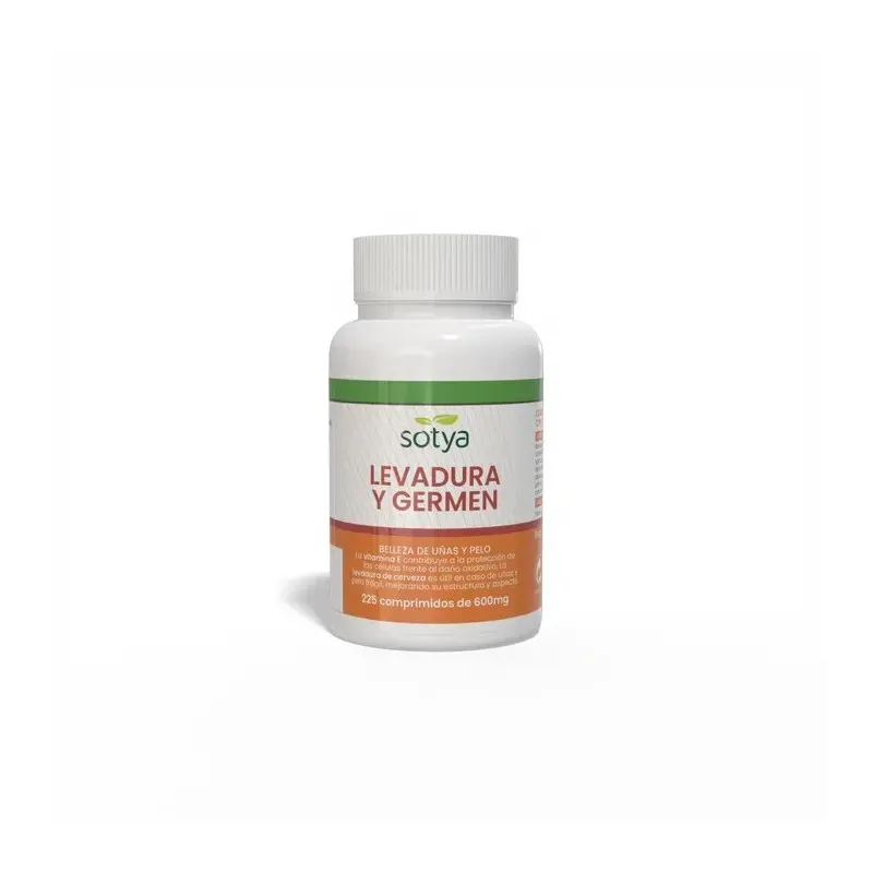 Sotya Levadura de Cerveza con Germen de Trigo, 225 comprimidos es un complemento alimenticio que aporta levadura de cerveza y germen de trigo, ingredientes implicados en funciones metabólicas y en el aporte de nutrientes esenciales.