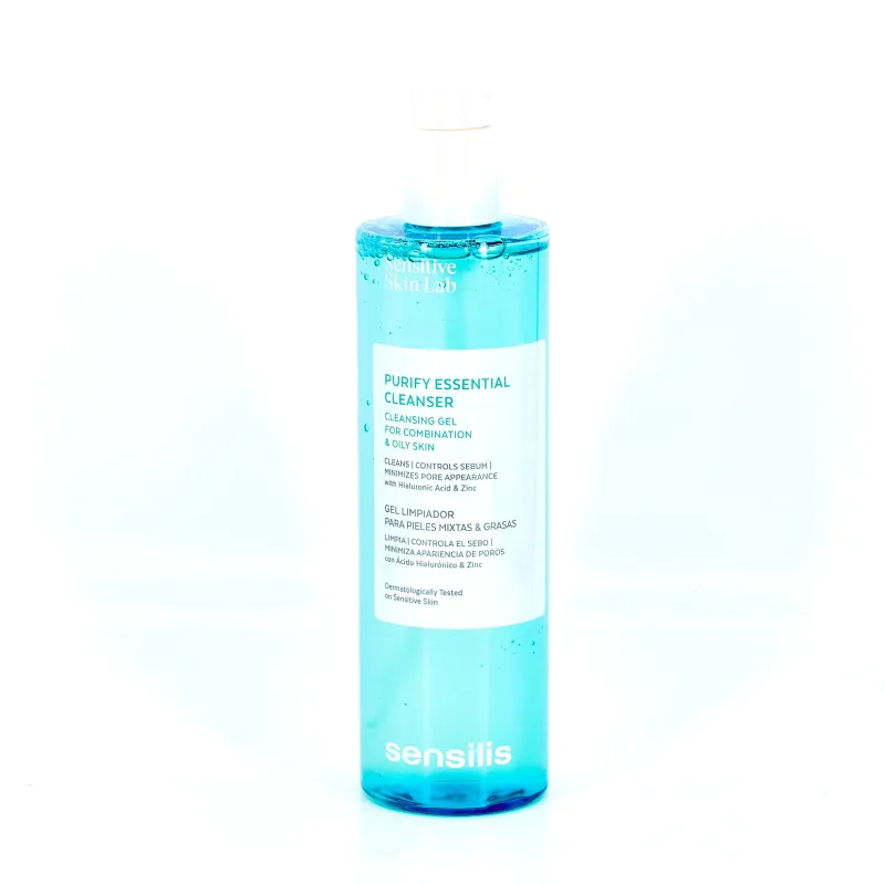 Sensilis Purify Essential Cleanser es un gel concebido para apoyar la limpieza diaria de la piel mixta o grasa con tendencia acneica. Su textura refrescante contribuye a eliminar el exceso de sebo para promover una piel suave y libre de impurezas.