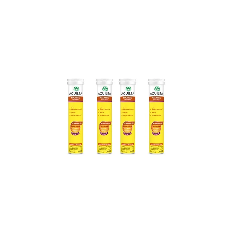 Aquilea Magnesio+Potasio Sabor Naranja Formato XL es un complemento alimenticio en comprimidos efervescentes que combina dos minerales esenciales: magnesio y potasio. Este formato de gran tamaño está especialmente pensado para cubrir las necesidades diarias de estos nutrientes, facilitando su disolución en agua y aportando un sabor a naranja agradable. Se formula para que cada comprimido contribuya al balance electrolítico del organismo y a las funciones fisiológicas en las que participan dichos minerales.