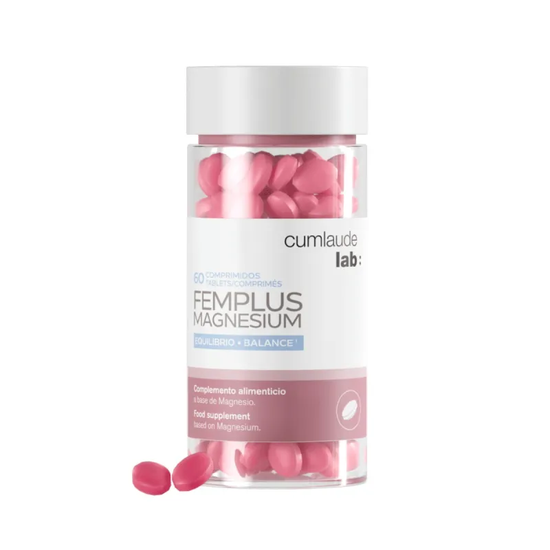 Cumlaude Femplus Magnesio es un complemento alimenticio que proporciona magnesio en forma de citrato, bisglicinato y óxido microencapsulado junto con ácido fólico y vitaminas B. Cada comprimido está diseñado para liberar el mineral de manera secuencial, de modo que el organismo pueda absorberlo eficientemente a lo largo del día. Las formas orgánicas de magnesio contribuyen al metabolismo normal, al funcionamiento del sistema nervioso y a la síntesis proteica, mientras que el ácido fólico y las vitaminas del grupo B colaboran en la producción de glóbulos rojos y en el metabolismo energético. Esta combinación favorece la reposición de magnesio en dietas con niveles insuficientes y no sustituye una alimentación variada ni un estilo de vida saludable.