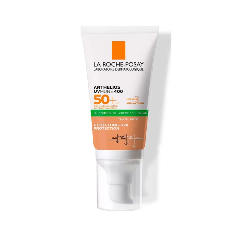 Anthelios UVMUNE 400 oil control gel-crema SPF50+ con color ofrece muy alta protección solar matificando la piel, sin dejar restos de brillos y sin aportar nada de grasa gracias a su textura toque seco, además con un bonito color.