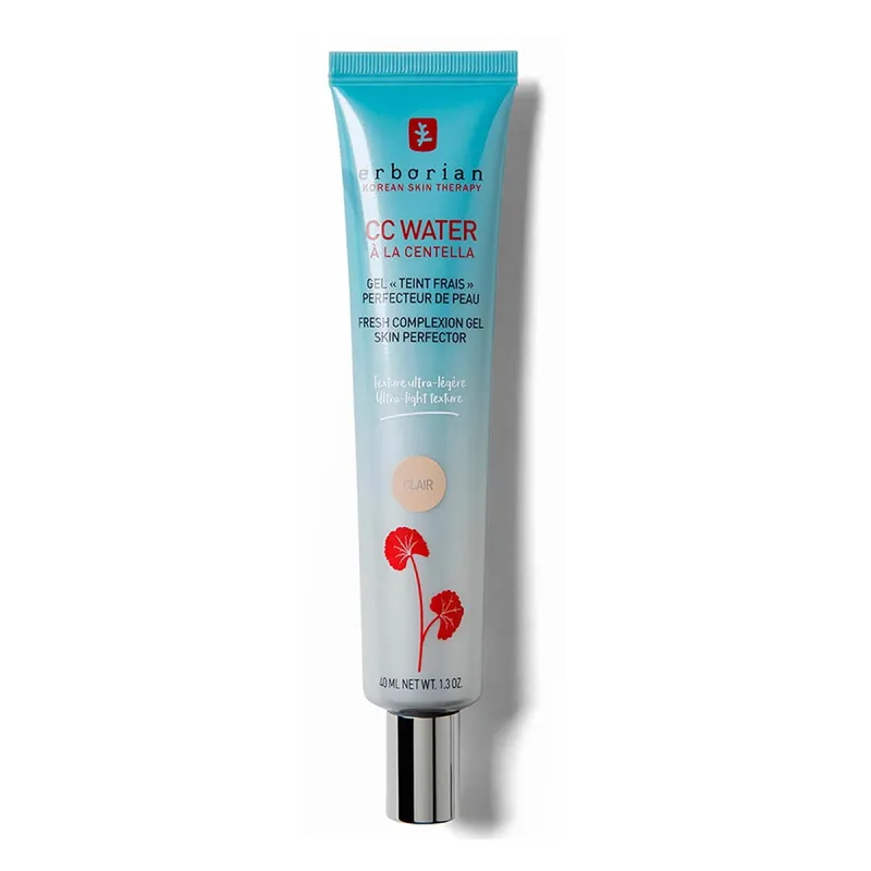 Erborian CC Water Clair se presenta en un envase de 40 ml con dosificador, ideal para llevar contigo a todas partes y aplicar en cualquier momento del día.