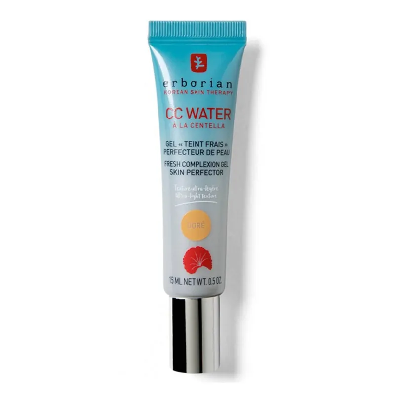 Erborian CC Water Dore se presenta en un envase de 15 ml, perfecto para llevar contigo a todas partes y retocar tu maquillaje en cualquier momento del día.
