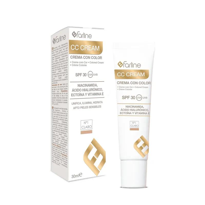 Farline CC Cream Claro sirve para unificar el tono de la piel con una cobertura ligera y transmitir una sensación de piel homogénea y radiante sin recurrir a bases más densas. Su tono claro está indicado para personas con piel clara o que buscan un resultado natural. Además de su función estética, integra protección solar con SPF 30 frente a radiación UVA y UVB, lo que ayuda a proteger la piel del impacto diario del sol.