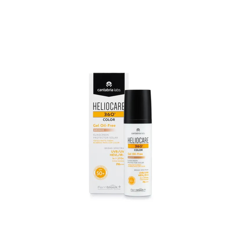 Heliocare 360° Color es considerado un protector solar libre de aceite que incluye una pigmentación especial para un acabado mate en bronce de la piel. También es un fotoinmuno protector que aprovecha la tecnología patentada Fernblock para proteger la piel de las 4 radiaciones principales: IR, UBA, UVA y Vis.