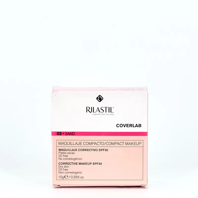 El maquillaje compacto Coverlab cubre las imperfecciones y unifica el tono de las pieles secas con imperfecciones. Tono arena para pieles morenas.