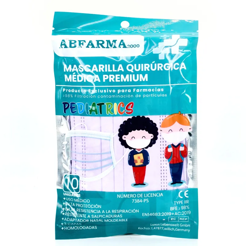 Mascarilla Quirúrgica Infantil Morada, 10 Uds.