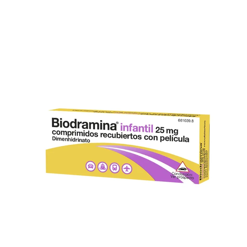 El dimenhidrinato es el principio activo de este medicamento y actúa contra el mareo producido por los medios de locomoción.