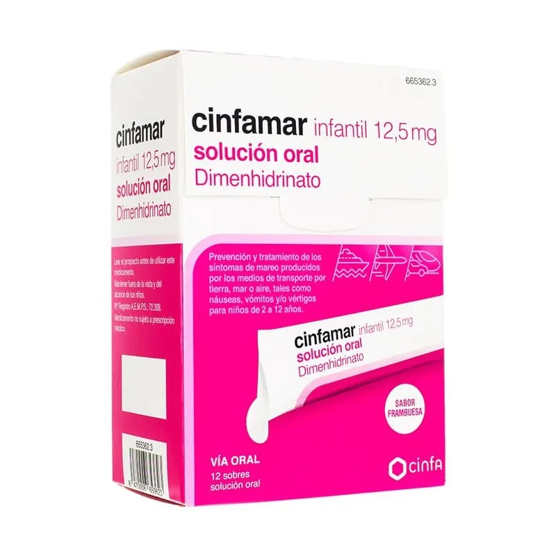 Medicamento indicado para tratar los mareos producidos por los medios de locomoción para niños de 2 a 12 años.