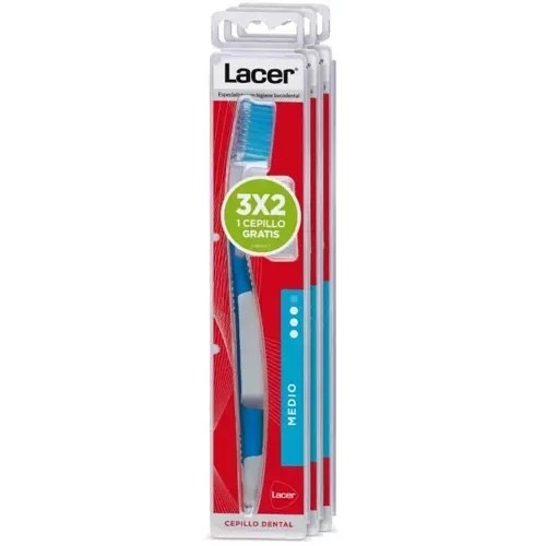 Se recomienda cepillarse lo dientes 3 veces al día con el cepillo dental Lacer Technic Medio. Para una limpieza completa se aconseja utilizar pasta dental y colutorio Lacer. Recuerda renovar de manera frecuente tu cepillo dental para garantizar su eficacia. Acude de manera regular al dentista para revisar tu salud dental.