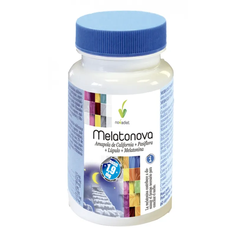 Novadiet Melatonova es un complemento alimenticio que aporta melatonina de origen natural junto a extractos botánicos. Su formulación está orientada a mantener el equilibrio del ciclo de sueño-vigilia y procurar un estado de relajación calmada.